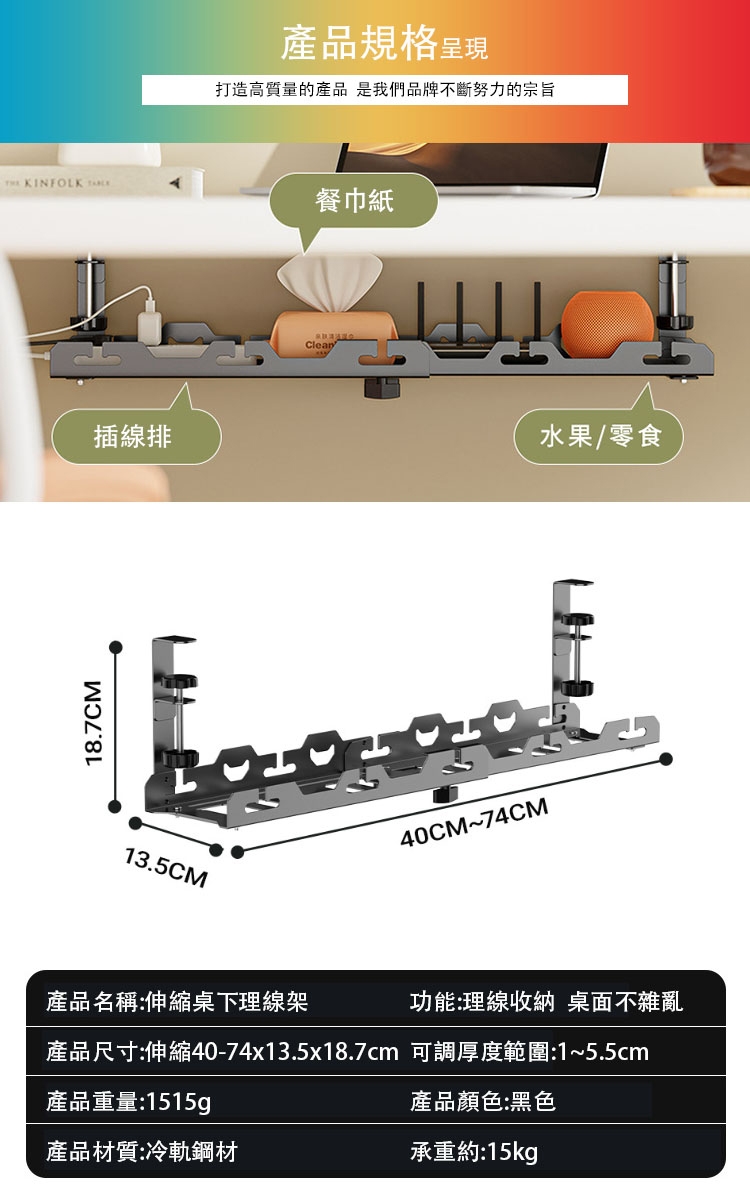 產品尺寸:伸縮40-74x13.5x18.7cm