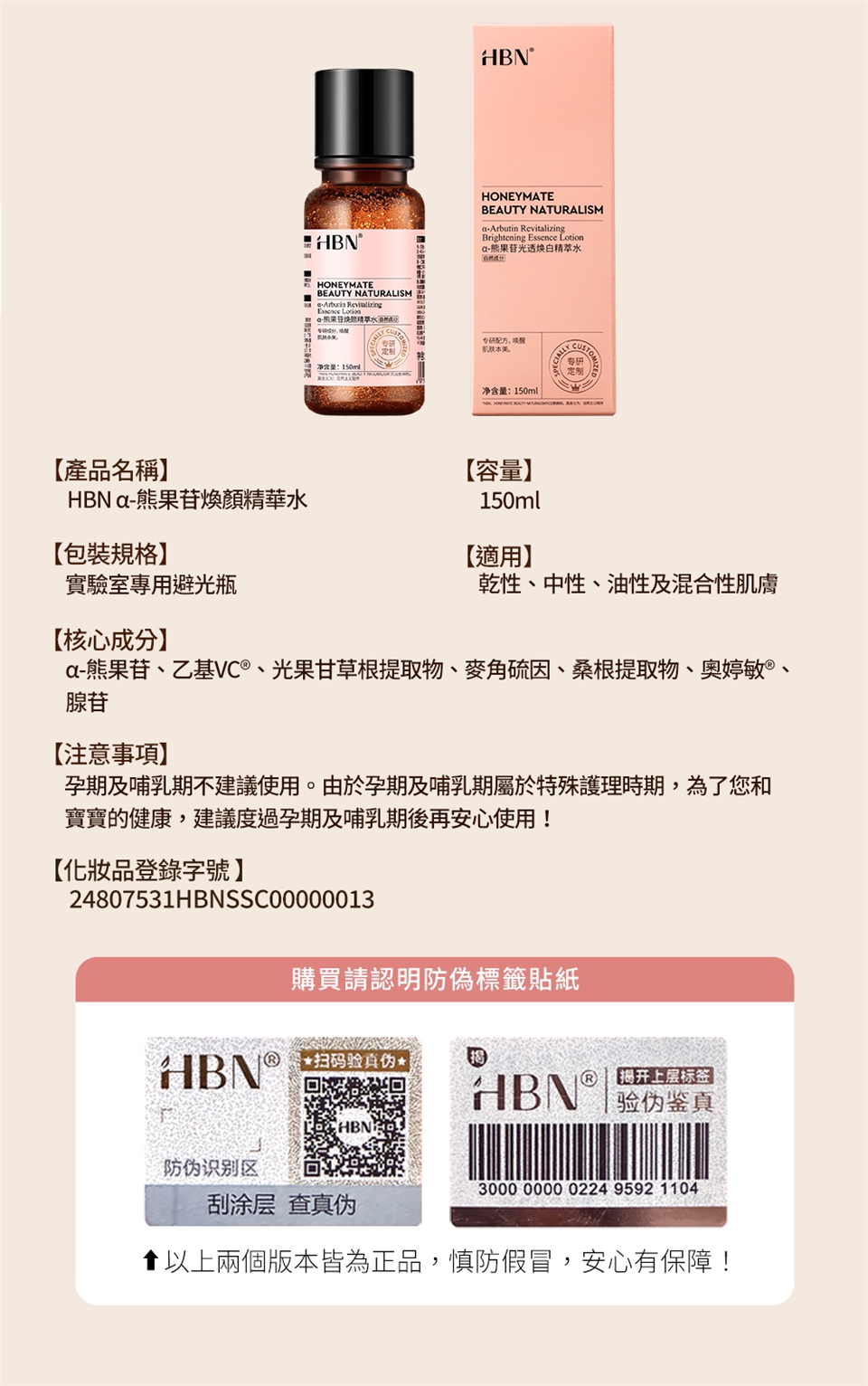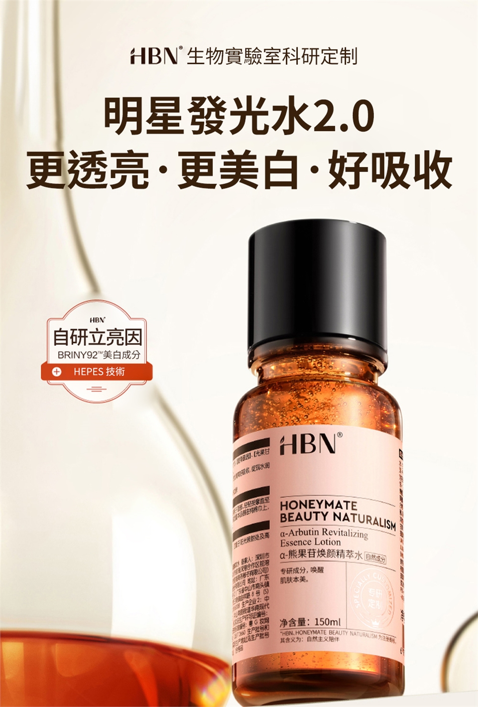 品名:【HBN官方】α-熊果苷煥顏精萃水 150ml (普通版發光水2.0)