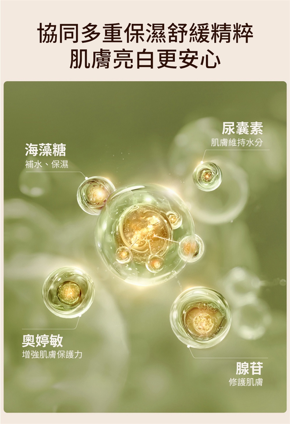 材質:主要成分:α-熊果苷、乙基VC®、光果甘草根提取物、麥角硫因、桑根提取物、奧婷敏®、腺苷。