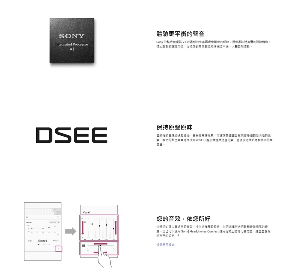 - DSEE™ 能還原壓縮過程中遺失的高音和淡出音效