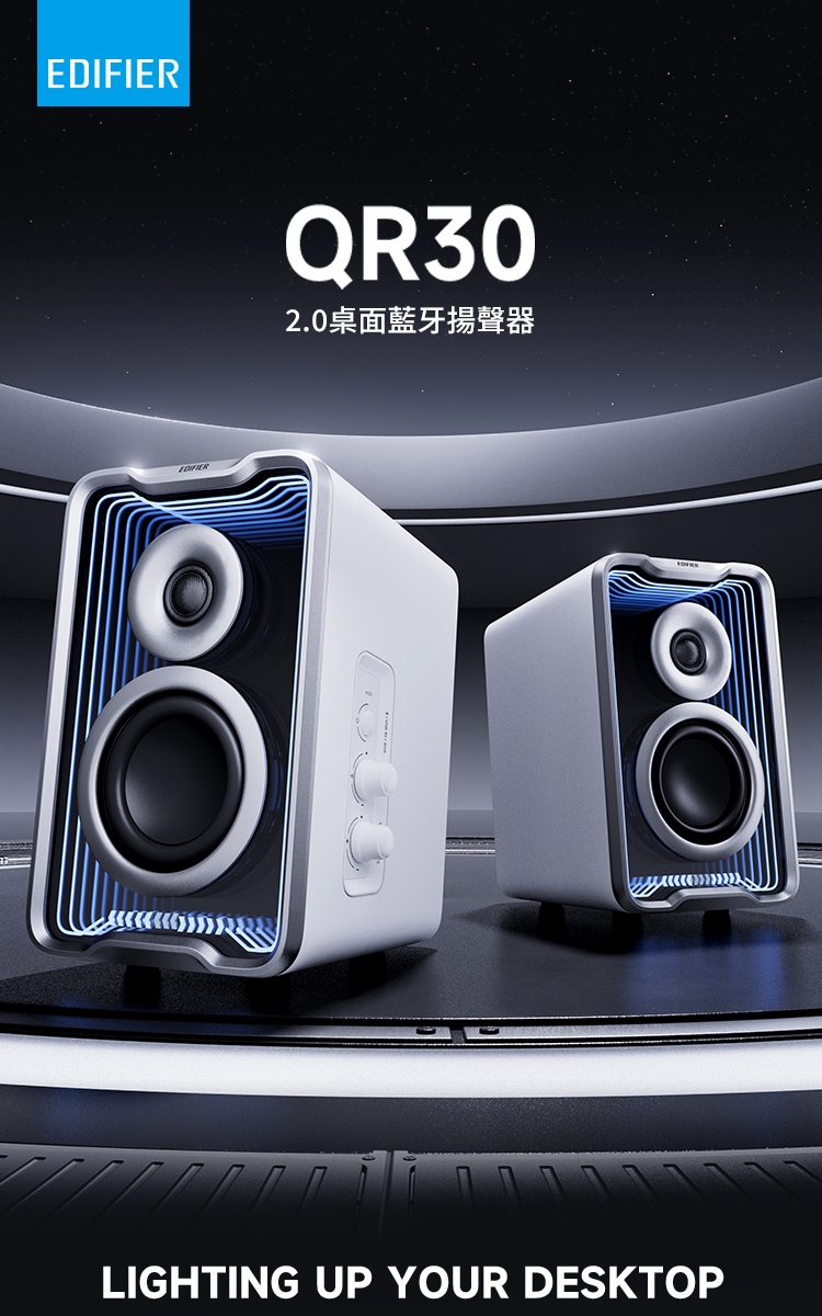 輕巧桌面 2.0 喇叭,結合清晰音質、精準低頻與多元連接,打造隨插即用的個人影音桌搭方案。
