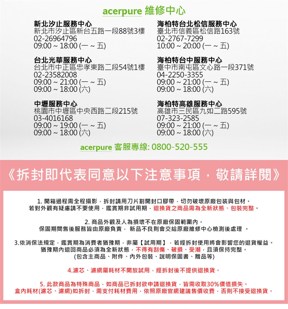 退貨商品及贈品必須是全新的狀態、完整包裝;必須保持商品本體、配件、贈品、保證書、原廠包裝及所有附隨文件或資料的完整性,請勿缺漏任何配件或損毀原廠外盒。