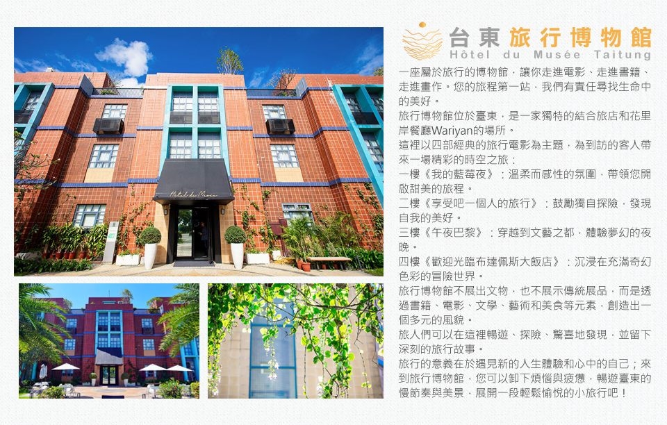 ‧搭乘飛機:台東航空站→轉搭-計程車或租車(車程約12分鐘)→旅行博物館(臺灣史前文化博物館旁)。