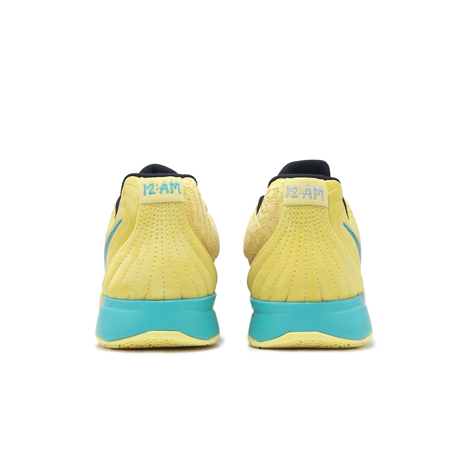 * 這組黃色以及湖水綠色漸層搭配。讓人聯想到了是否受到了 KD 6 'Seat Pleasant' 的配色啟發;賽季接近尾聲, Morant 也將此配色投入到實戰當中;除此之外還留有Halloween的勾爪的飾品裝飾。