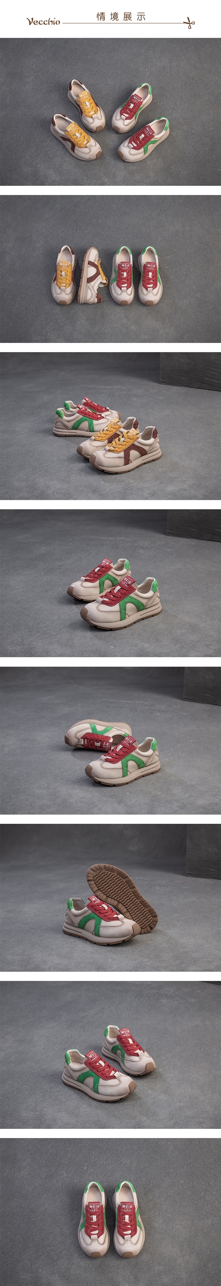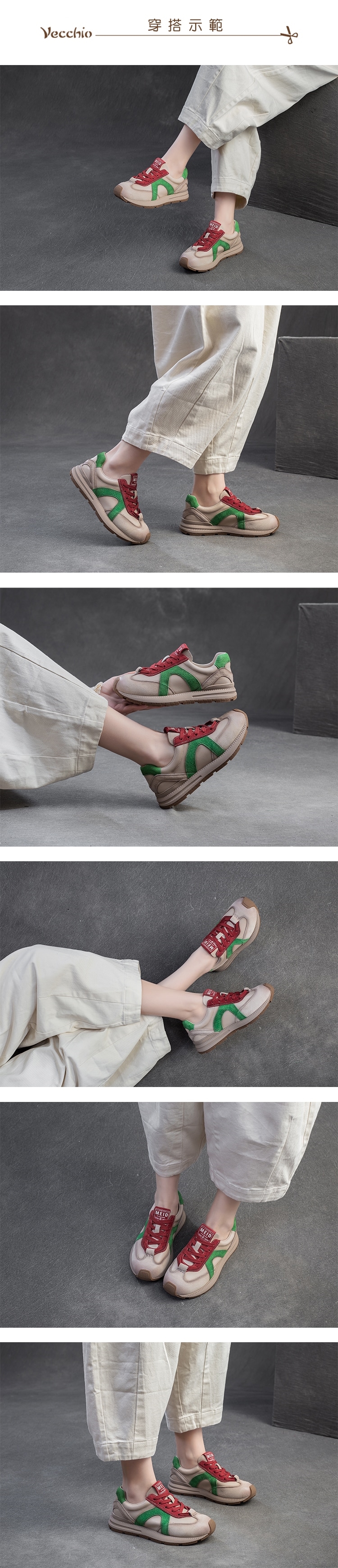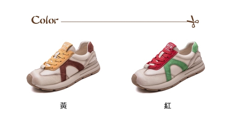 【VECCHIO】真皮彩色拼接休閒運動鞋/真皮頭層皮革彩色線條拼接復古休閒運動鞋 女鞋 紅