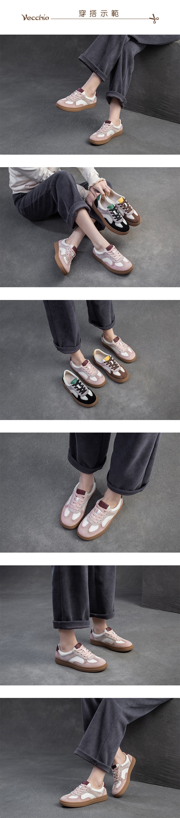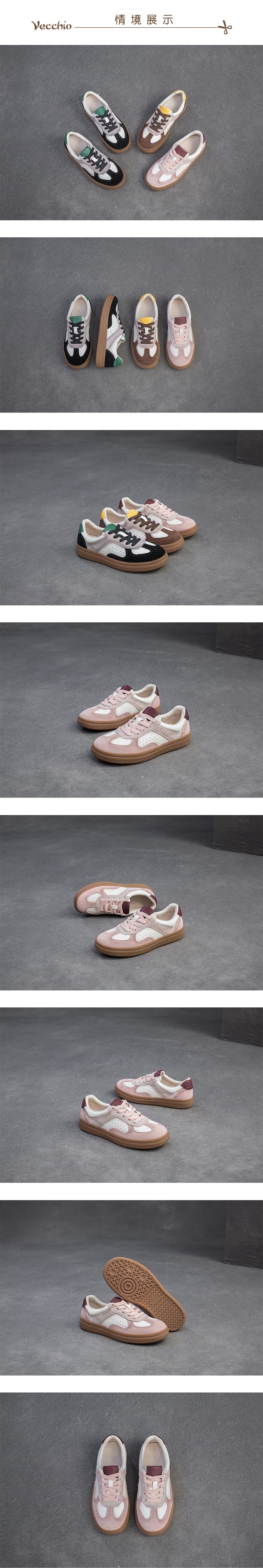 【VECCHIO】真皮彩色絨面平底休閒鞋/真皮彩色絨面拼接復古平底休閒鞋 女鞋 粉