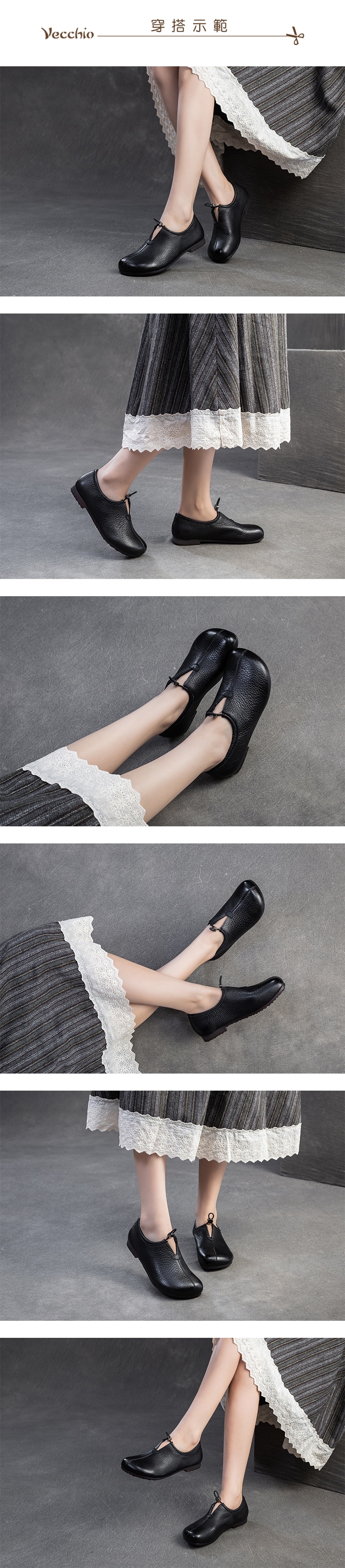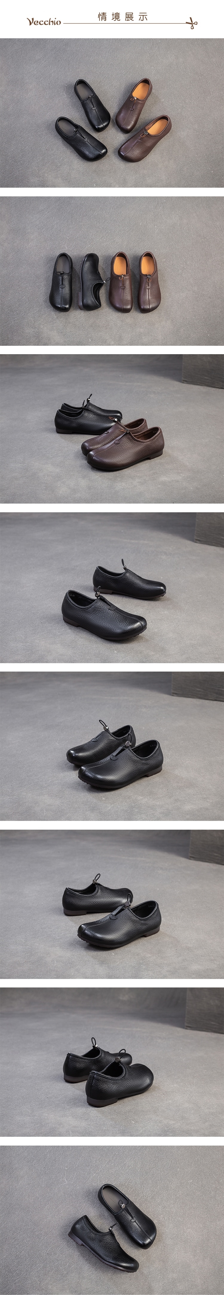 【VECCHIO】全真皮束口低跟樂福鞋/全真皮頭層牛皮便利束口復古百搭低跟樂福鞋 女鞋 黑