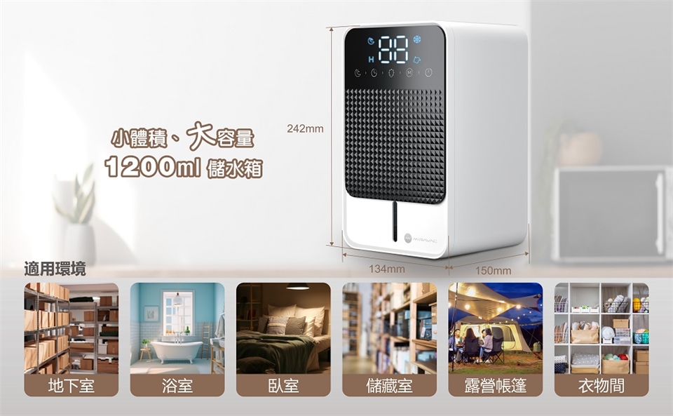 . 無壓縮機超靜音,35分貝睡眠模式. 一鍵除濕,空氣防潮除霉