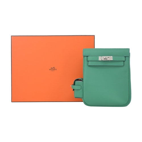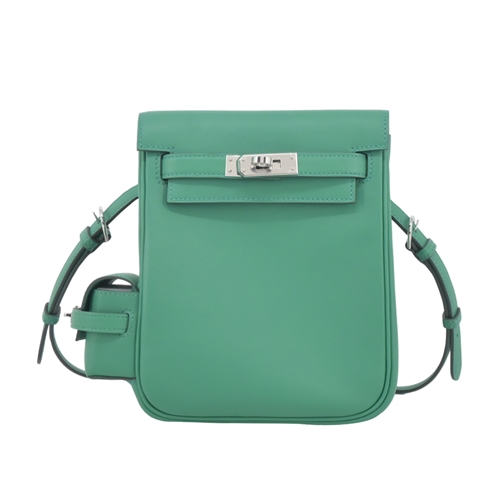 Hermes 愛馬仕 Kelly ado jump Swift牛皮凱莉後背包(絨絲綠/W刻/銀釦)