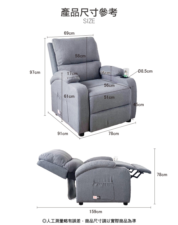※ 請於購買前先行測量空間大小、距離、商品尺寸,大型物件因人工丈量,難免會有些誤差值約正負0.5cm左右,詳細尺寸以實品為主,以免造成爭議