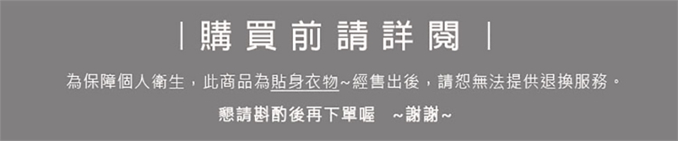 P.S內褲為私人貼身物品,為保障個人衛生,此商品為貼身衣物~經售出後,請恕無法提供退換服務。懇請斟酌後再下單喔 ~謝謝~