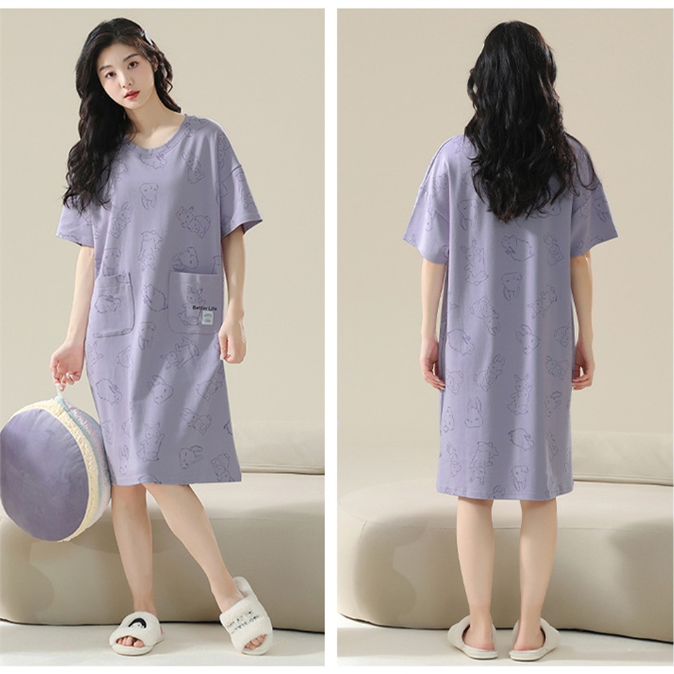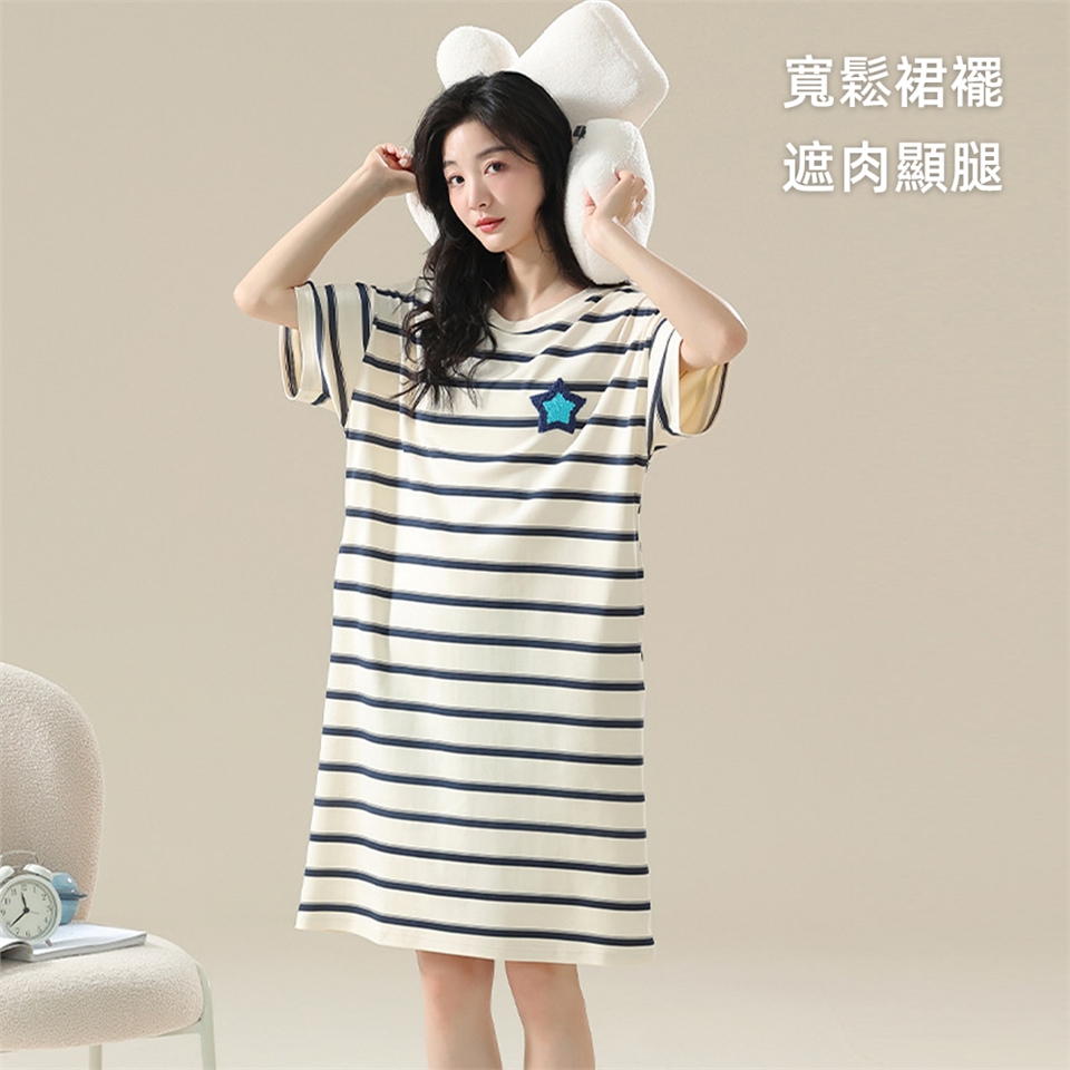 【STizi 史堤茲】和事現貨 寬鬆半袖印花居家睡裙 S015