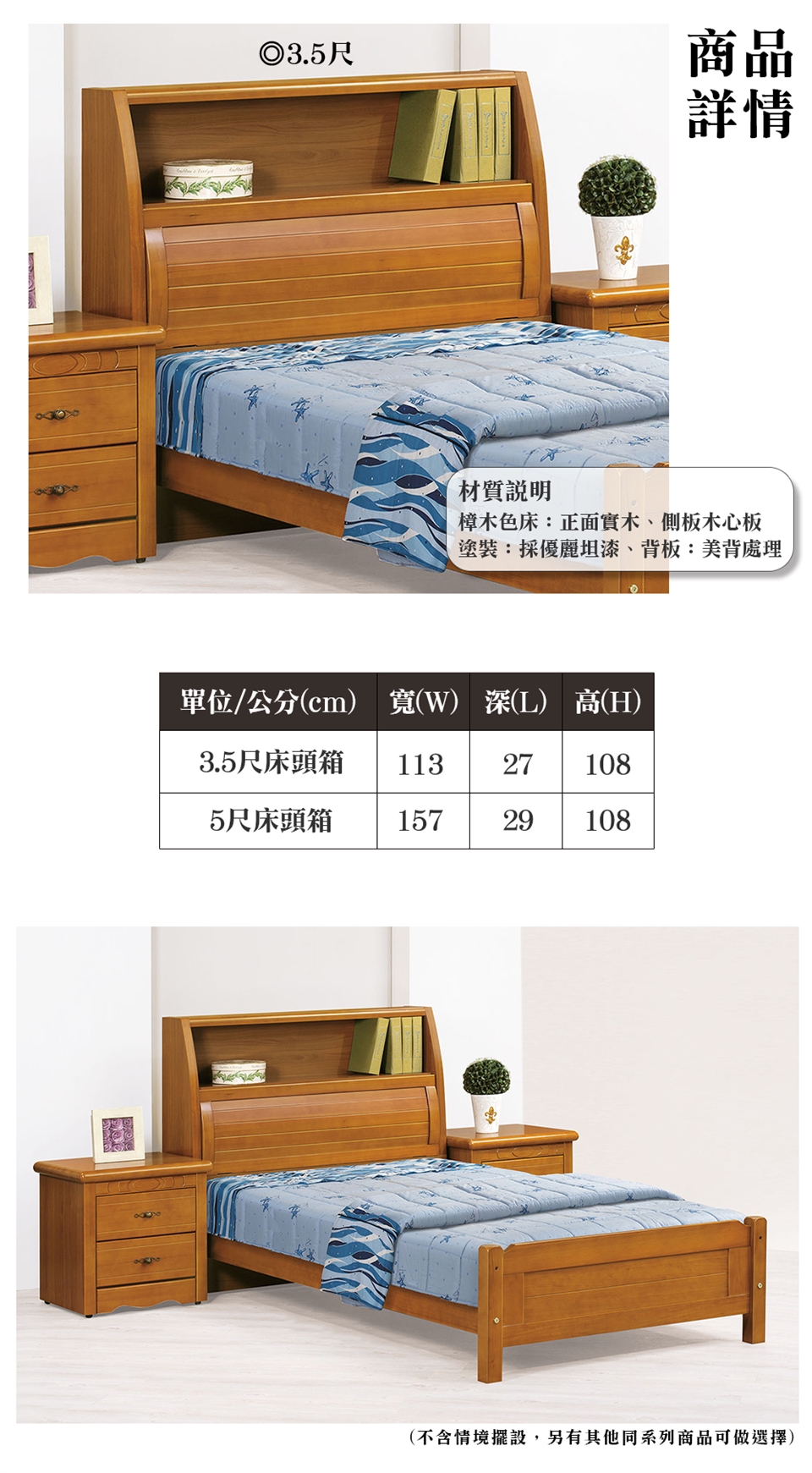 ※此賣場僅販售 諾琳琳實木樟木色床頭箱(單大3.5尺)※