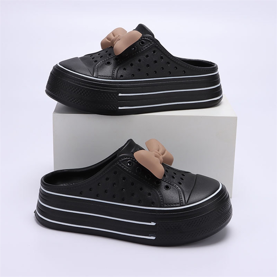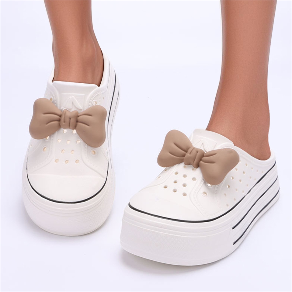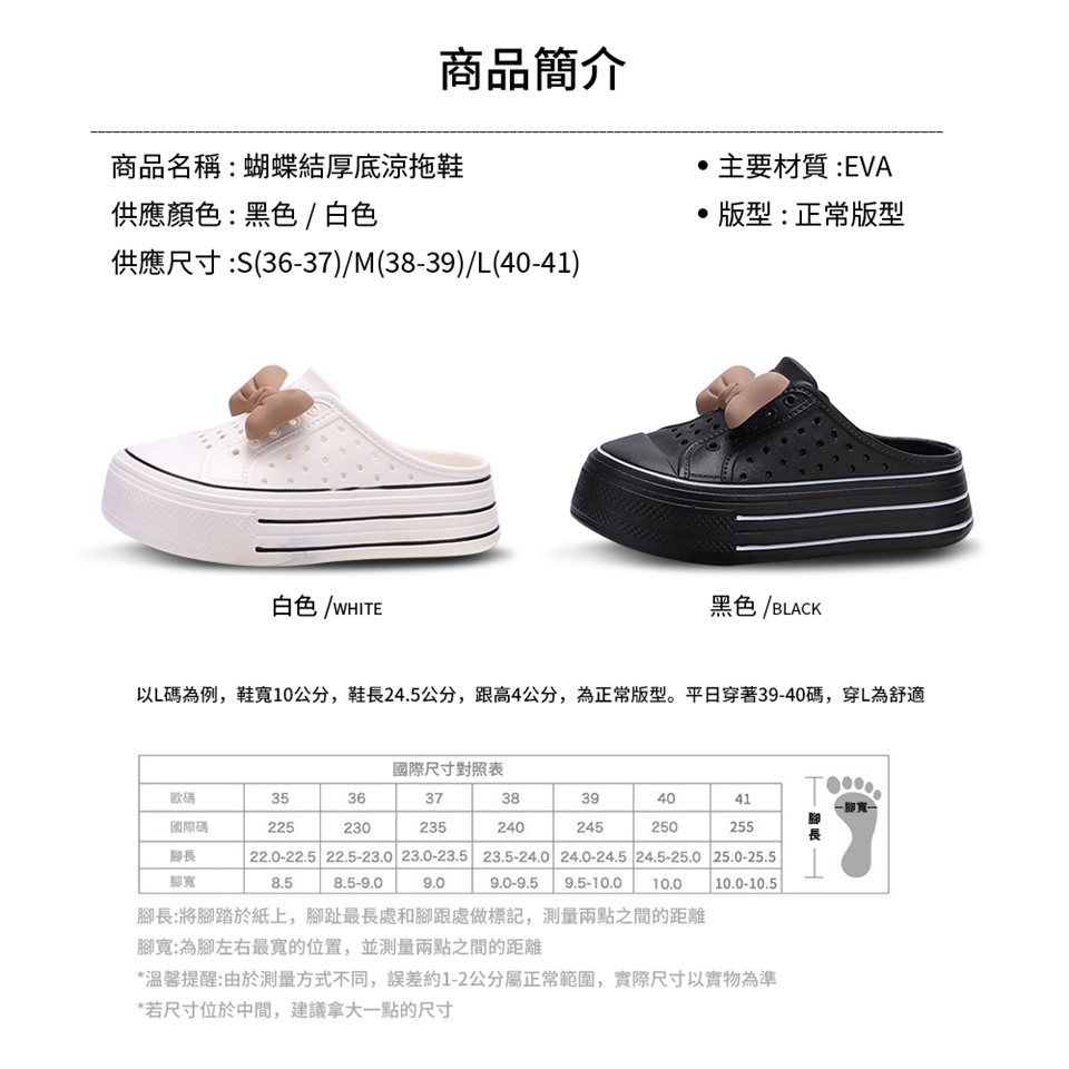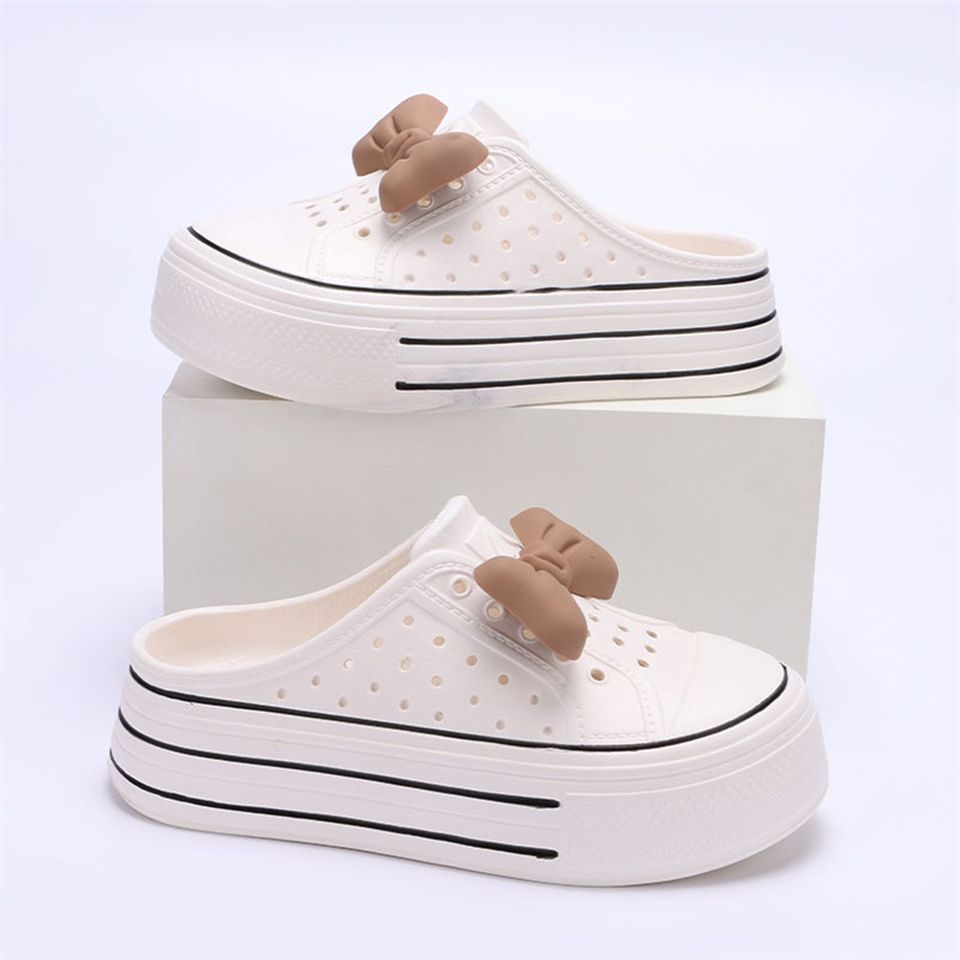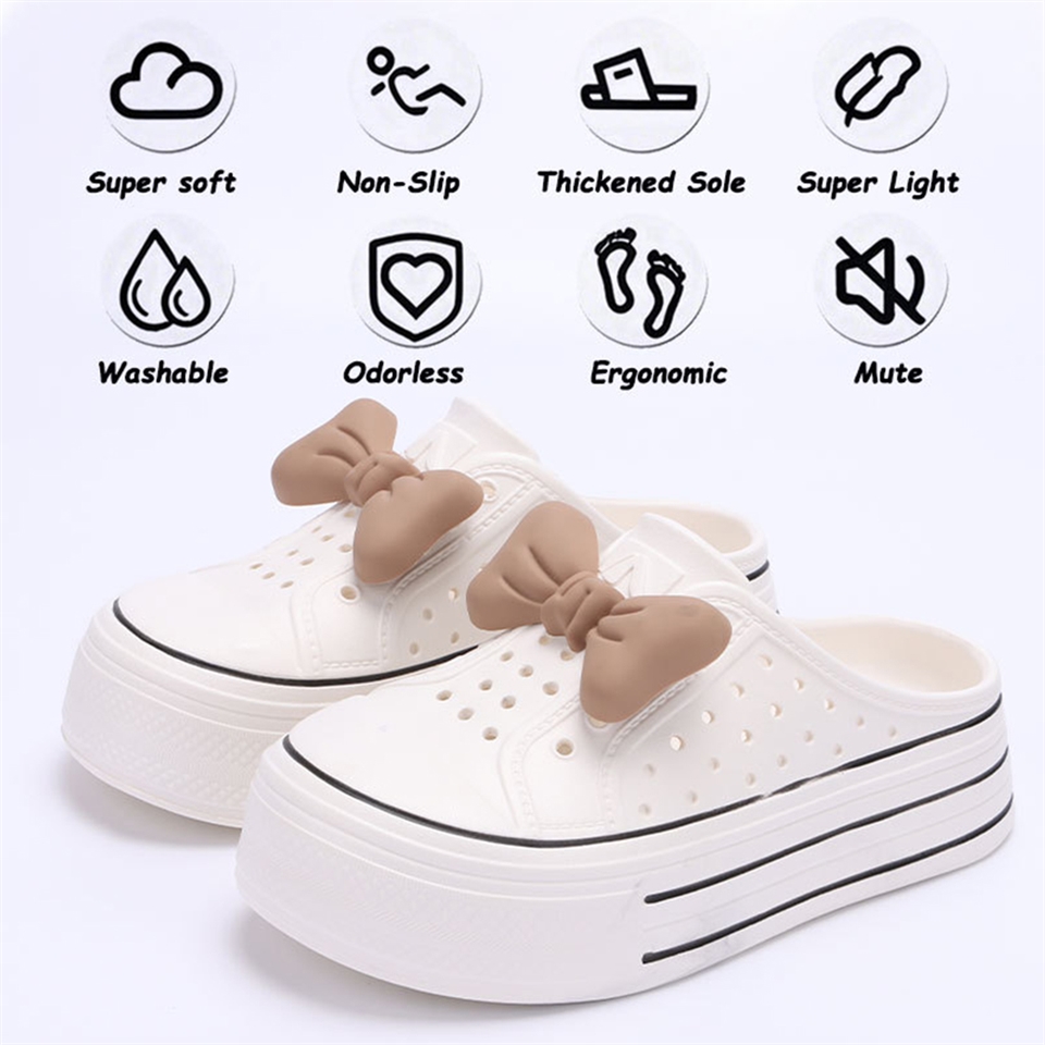 【Amoscova】雨天可穿 足弓包覆感 蝴蝶結洞洞鞋 厚底鞋(1725)