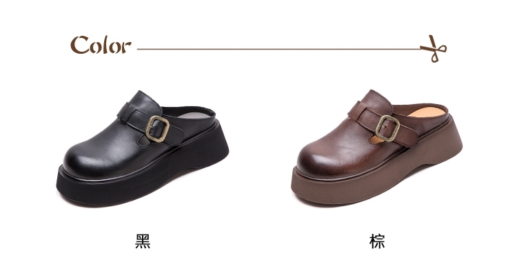 【VECCHIO】真皮皮帶釦厚底包頭拖鞋/真皮頭層牛皮復古皮帶釦飾厚底包頭拖鞋 女鞋 黑