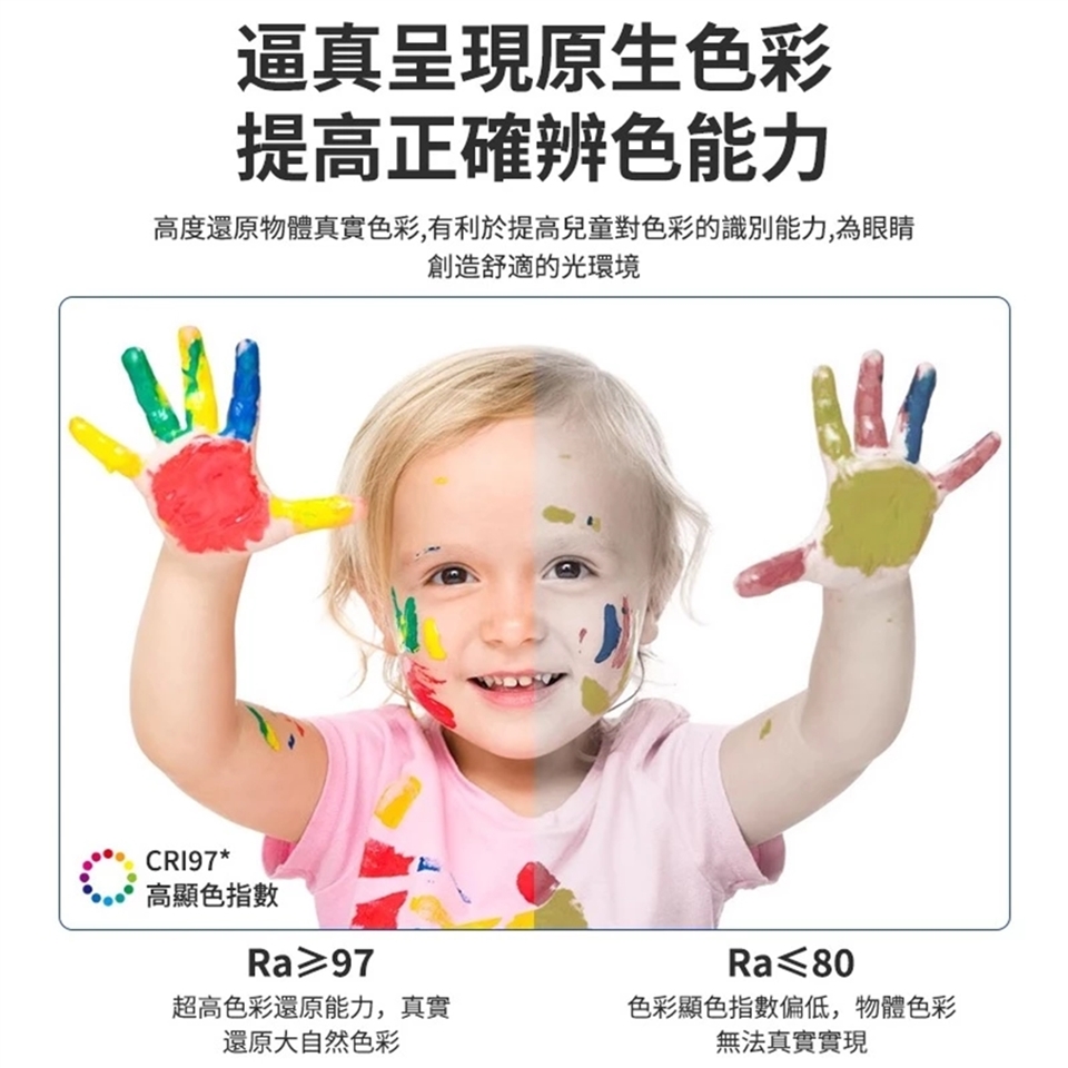 普通燈具Ra≤80 全光譜燈具Ra≥97
