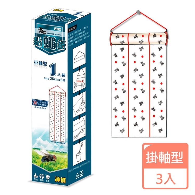 神捕 掛軸型黏蠅紙25x5cm(3入)