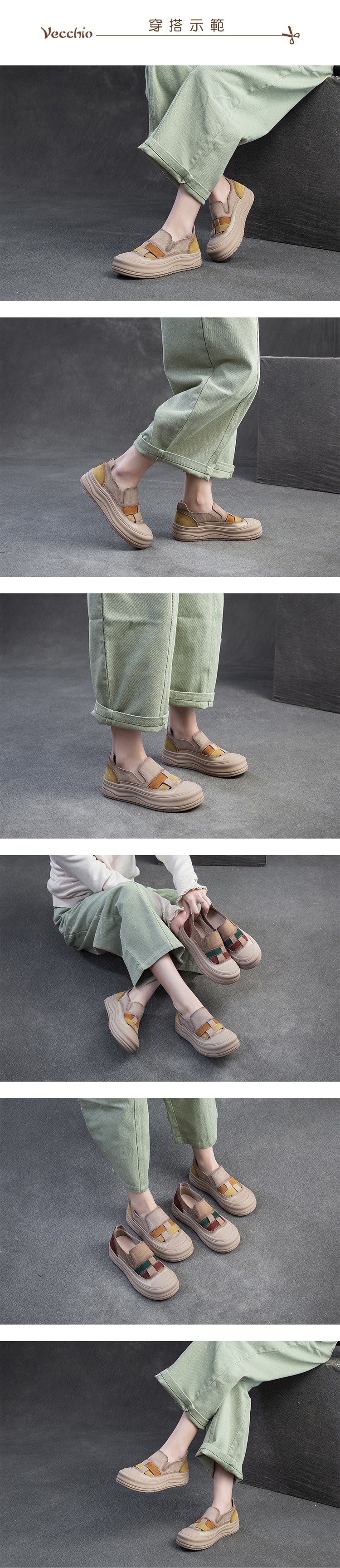【VECCHIO】真皮撞色編織厚底樂福鞋/真皮頭層牛皮撞色編織裝飾厚底樂福鞋 女鞋 米