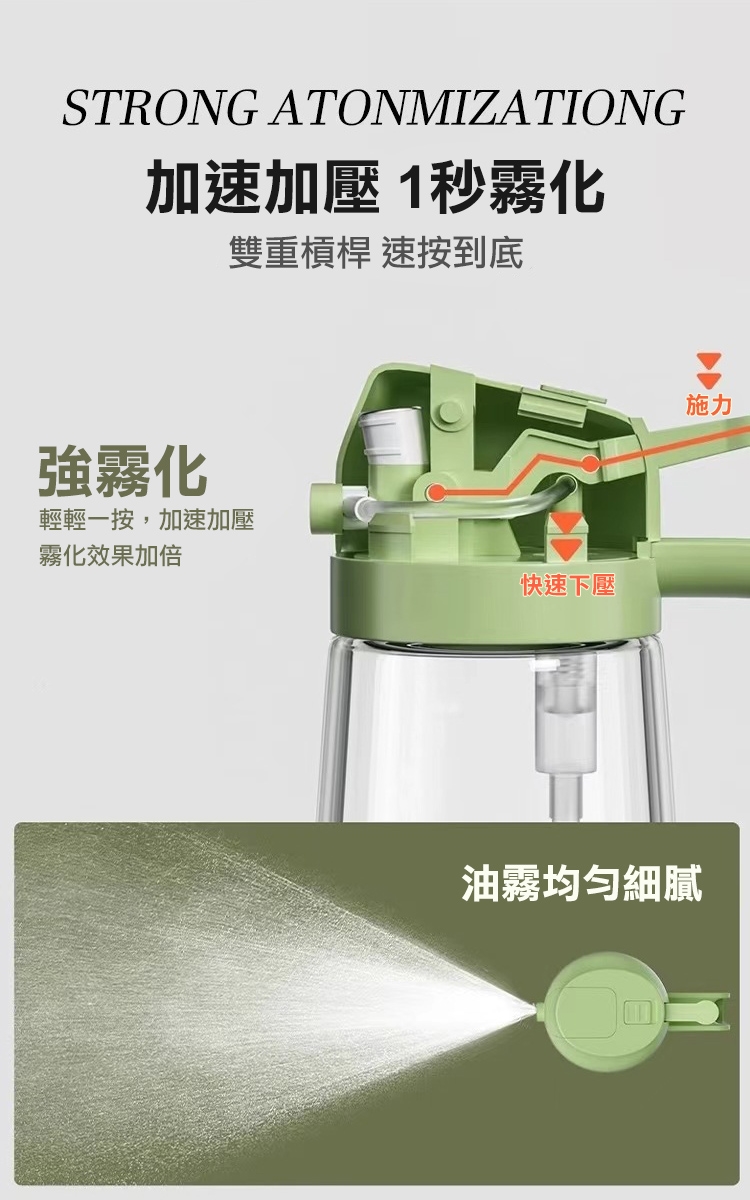 加速加壓,一秒霧化,油霧均勻細膩,一次約0.5g