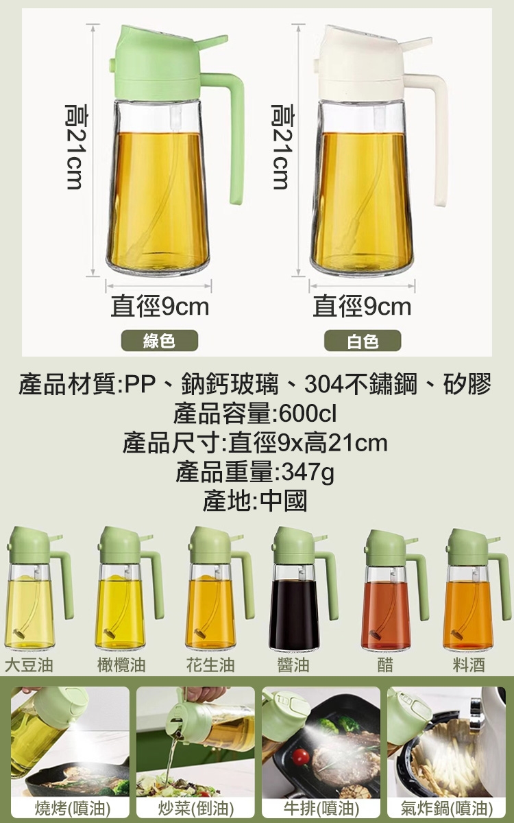 【COMET】噴倒兩用玻璃油壺(噴油壺 自動開合油瓶 氣炸鍋噴油瓶 兩用噴油瓶 噴油罐 醬油罐/001-600)