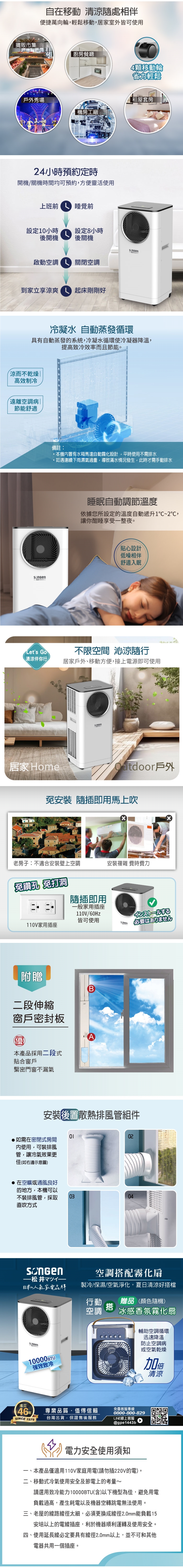 【日本SONGEN】松井10000BTU多功能清淨除濕移動式冷氣機