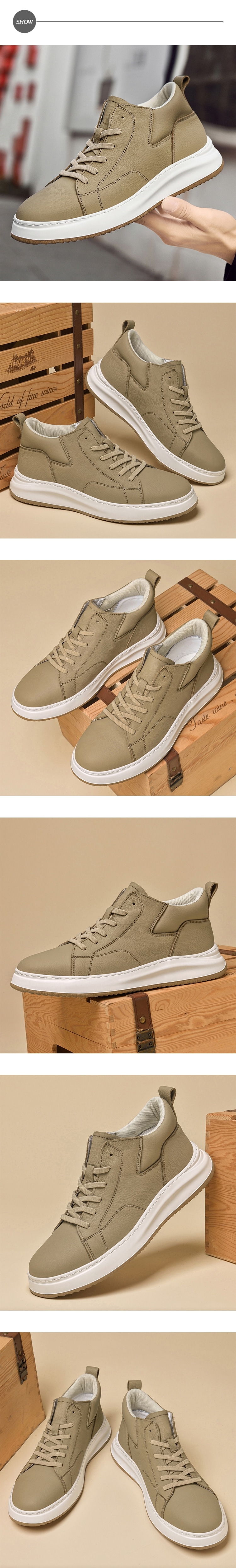 【Adonis】真皮高筒輕量厚底運動休閒鞋/真皮頭層牛皮高筒輕量厚底運動休閒鞋 男鞋 卡其