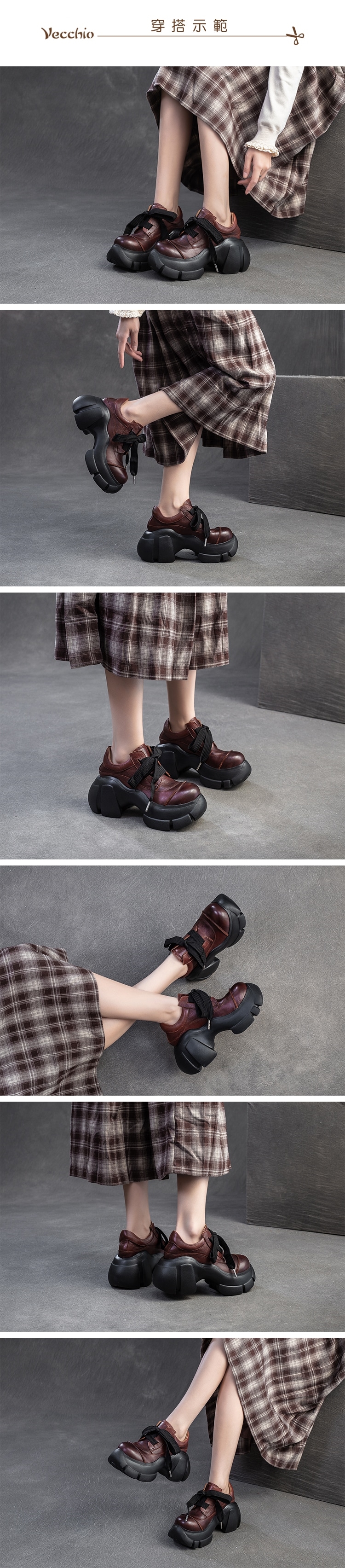 【VECCHIO】全真皮鬆糕厚底寬繫帶休閒鞋/全真皮頭層牛皮復古鬆糕厚底寬繫帶個性休閒鞋 女鞋 棕