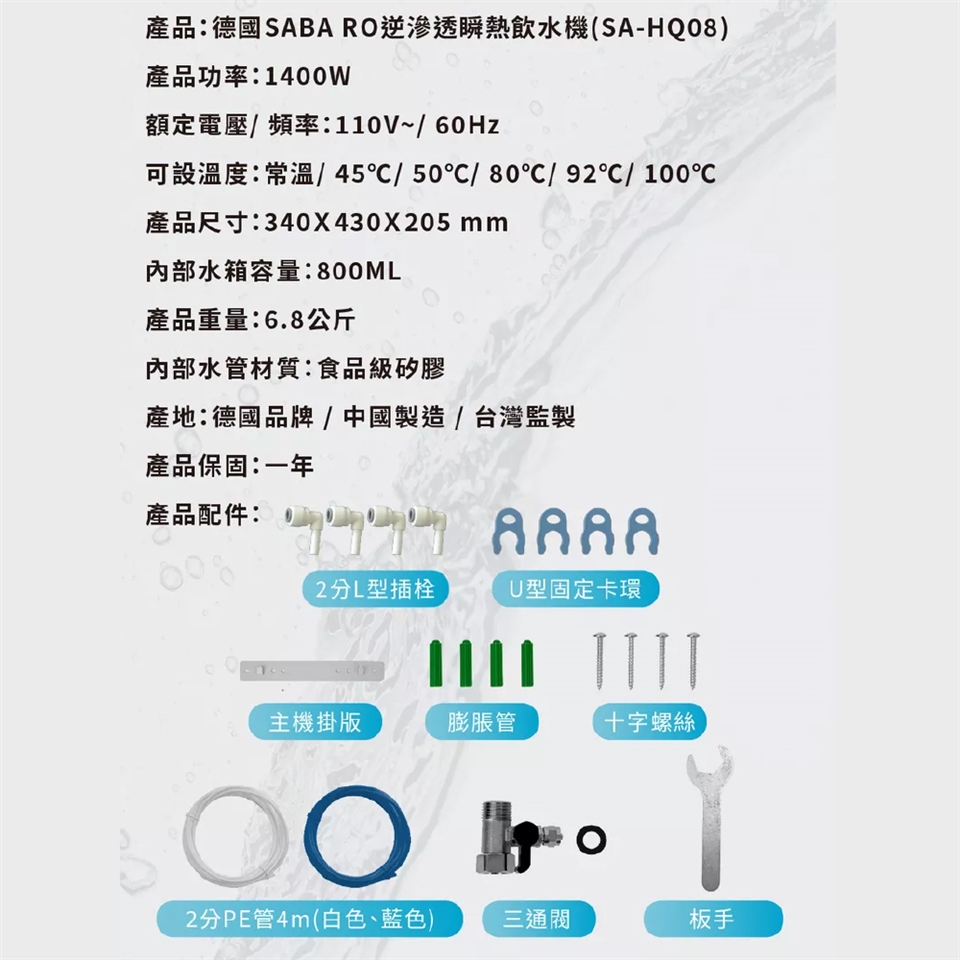 | SABA RO即熱式濾淨飲水機 SA-HQ08 |