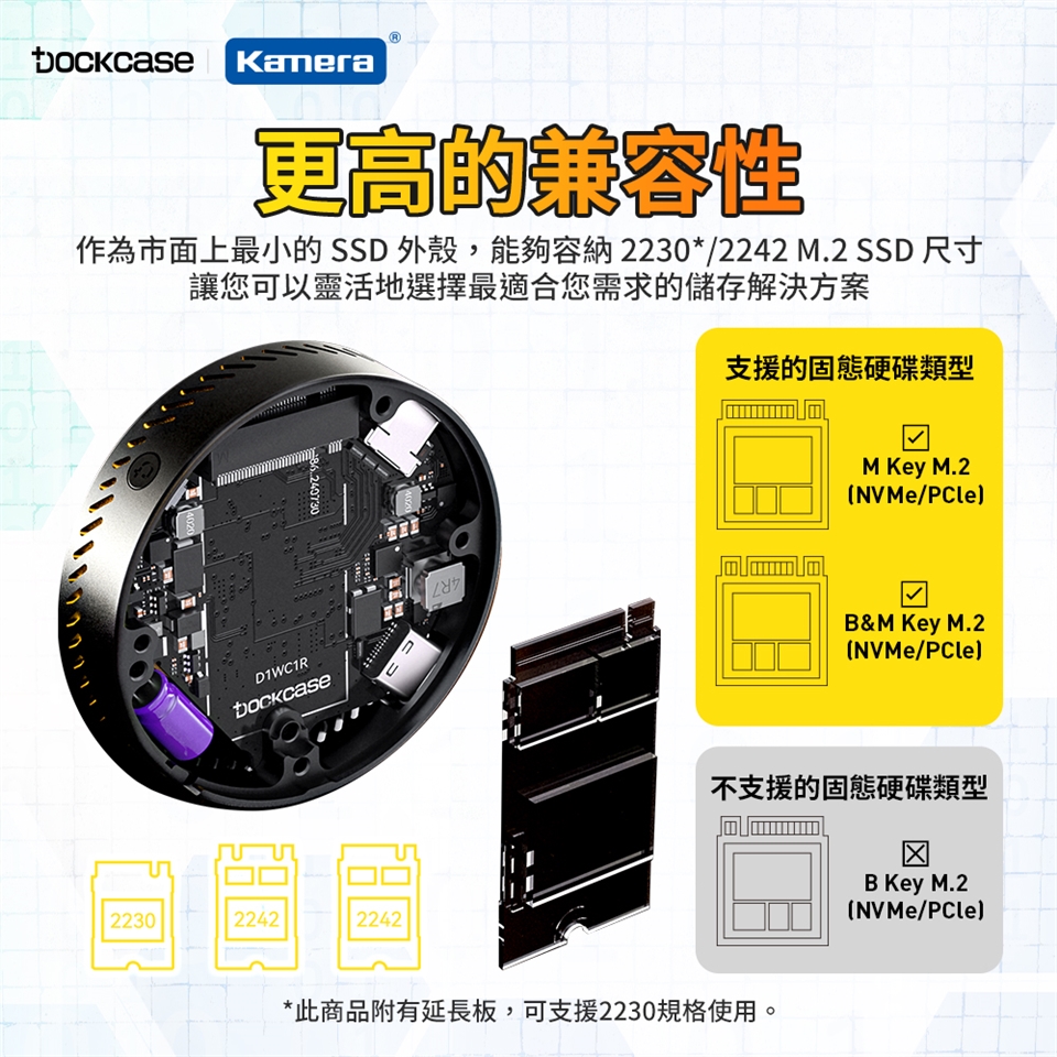 支援SSD規格:2242/2230(其中2230透過延長板來支援)