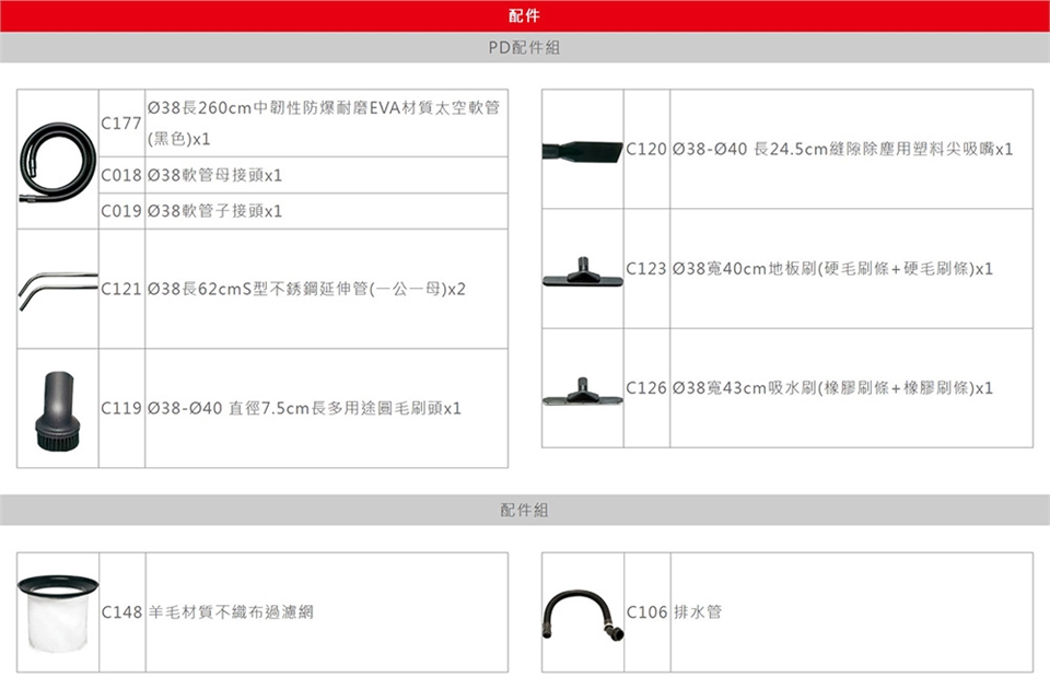 多樣配件:多種吸塵吸水配件,能克服任何環境清潔。