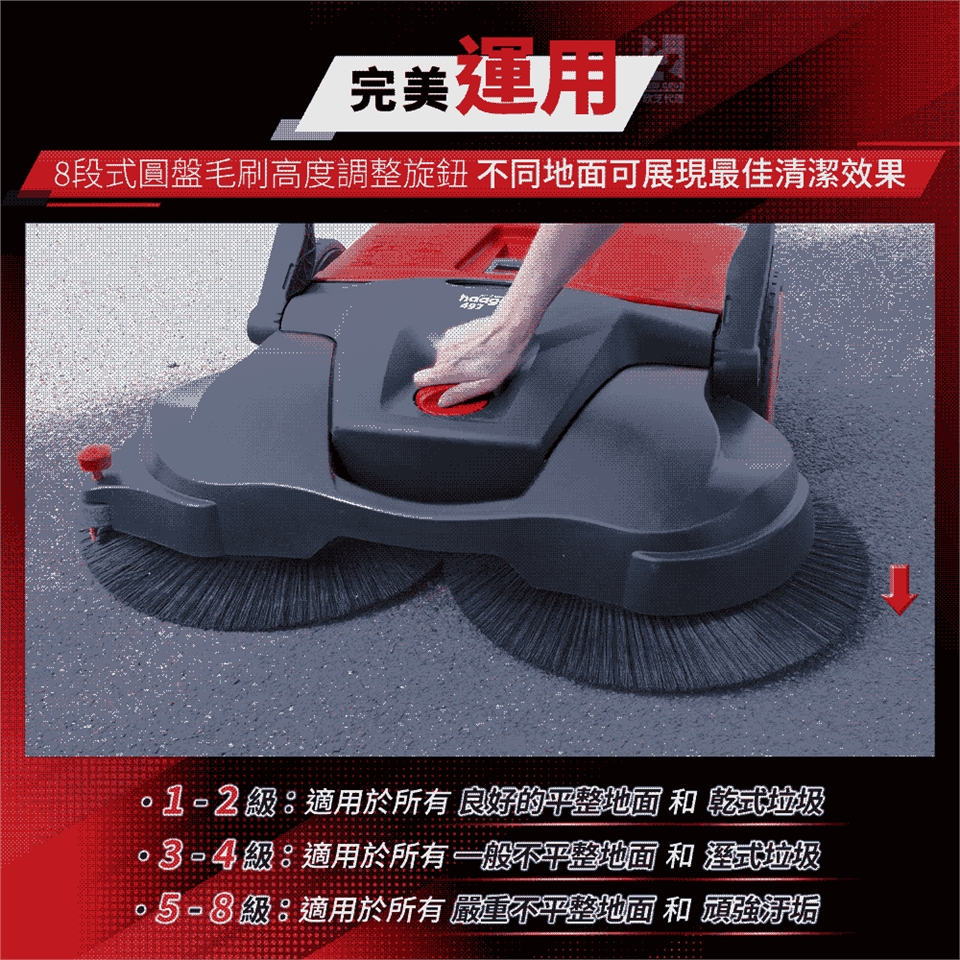 刷高調整:8段式圓盤毛刷高度調整,不同地面可展現最佳清潔效果。