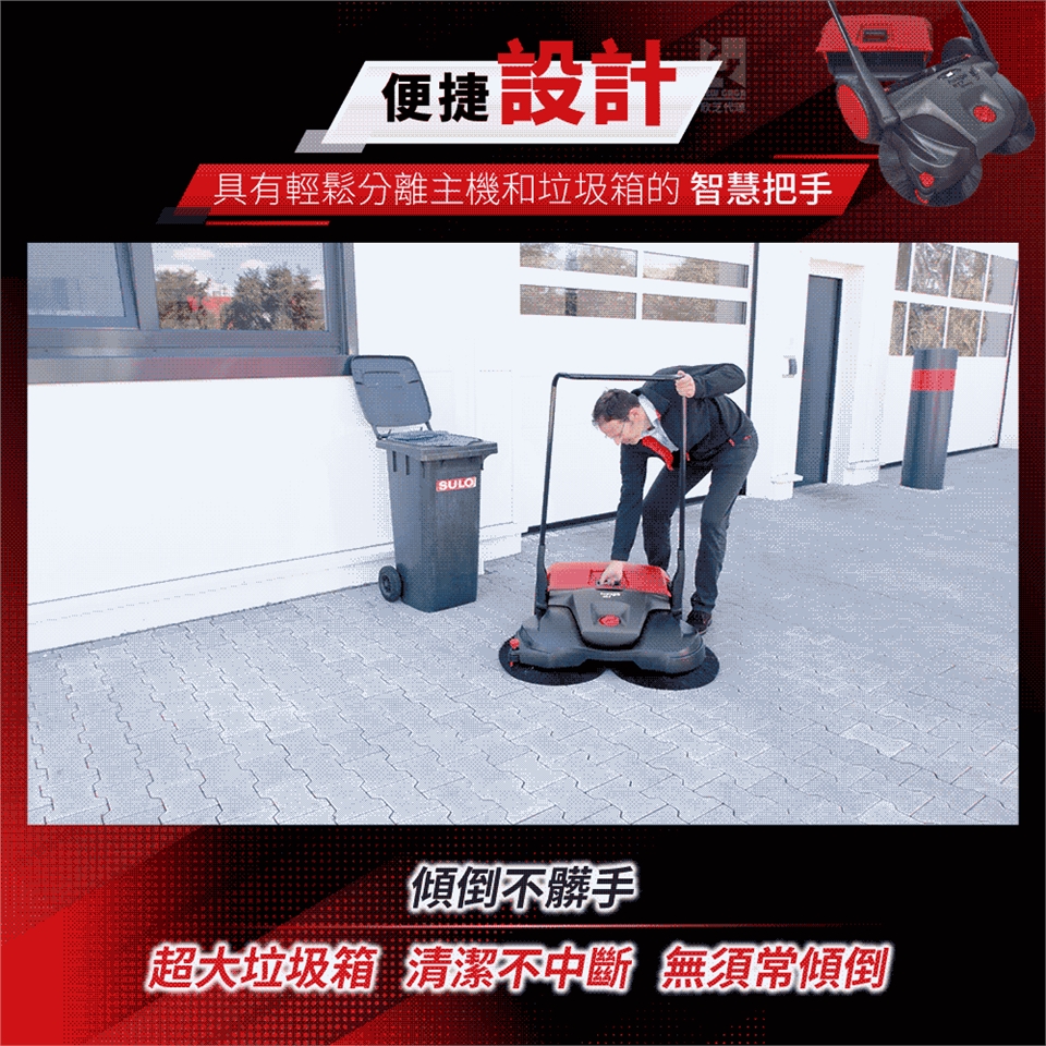 省時省力:免用汽油、電線,手推電力驅動每小時1240坪的清掃效率,一機抵12人使用傳統掃帚清理,足足節省90%時間。
