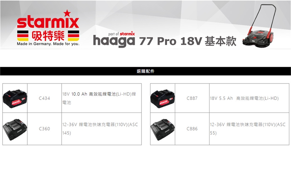 高效續航    專利氣冷式散熱技術的鋰電池和充電器,具有過度充放電保護裝置,高效能、快充電和長壽命。