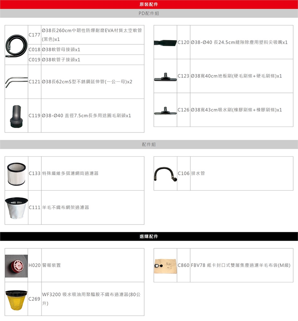 多樣配件:多種吸塵吸水配件,能克服任何環境清潔需求。