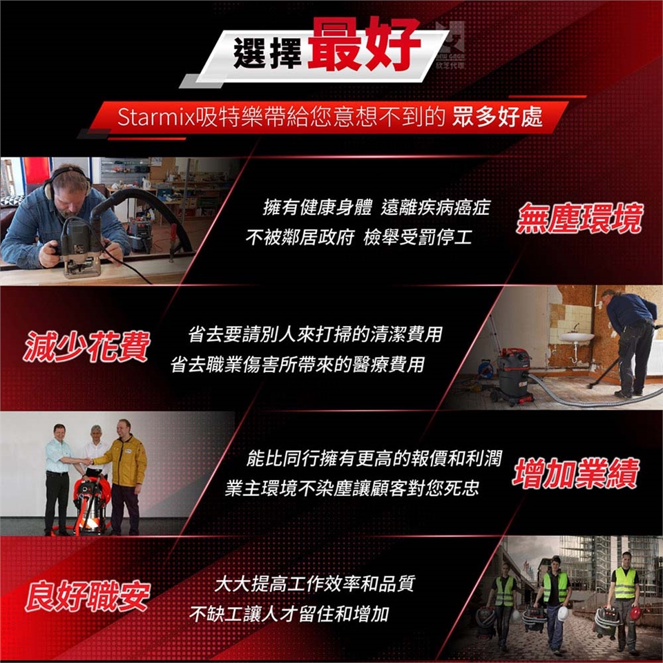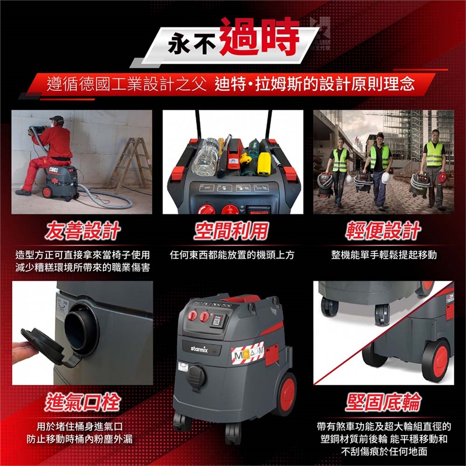 一機四用:家、商業、工業(極端粉末環境)、無塵(萬級以上等級),各大場所皆可清潔。