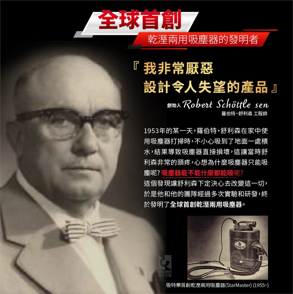 乾溼兩用:乾溼發明者,吸塵、吸水、吸油、吸酸、吸鹼,不再只有吸塵。