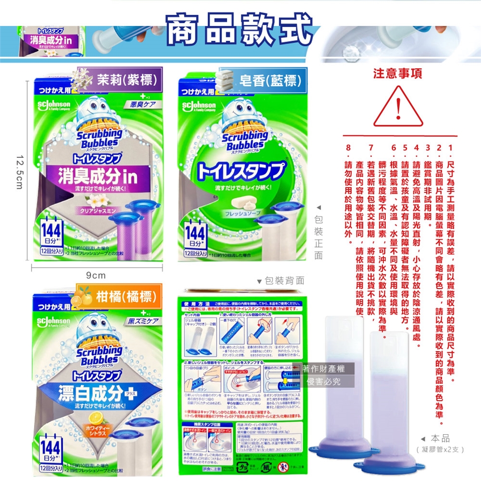 ●款式:茉莉(紫標)、皂香(藍標)、柑橘(橘標)。