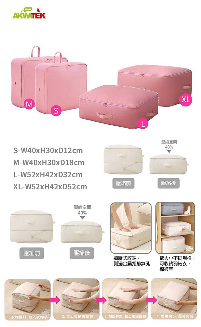 AKWATEK 衣物壓縮袋一組(顏色隨機出貨) AK-08149-S+M+L+XL