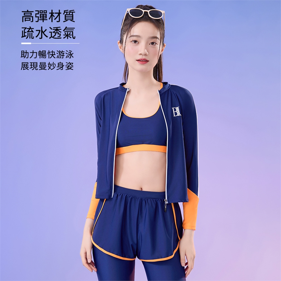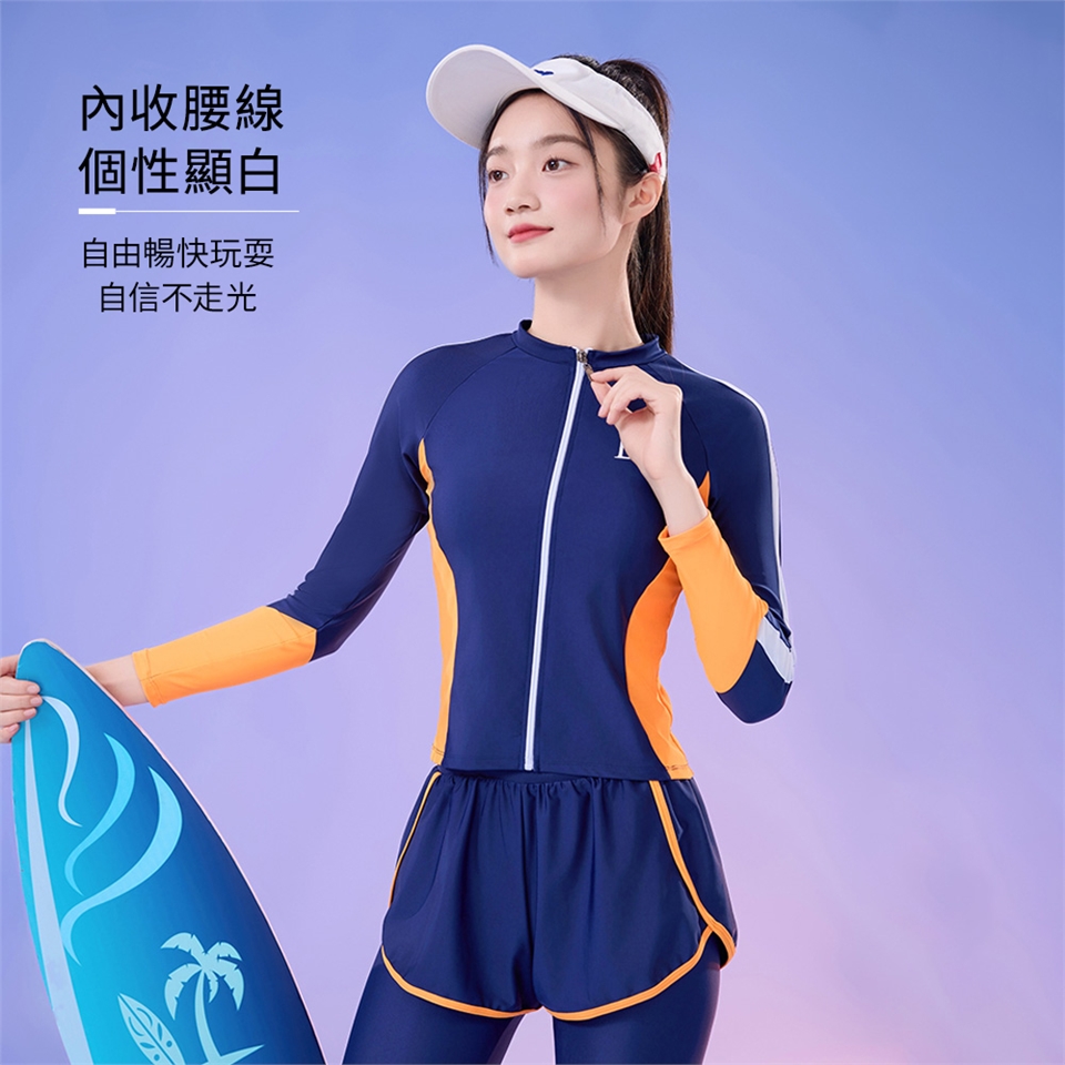 【STizi 史堤茲】和事現貨 拚色亮麗四件式長袖泳裝(482)