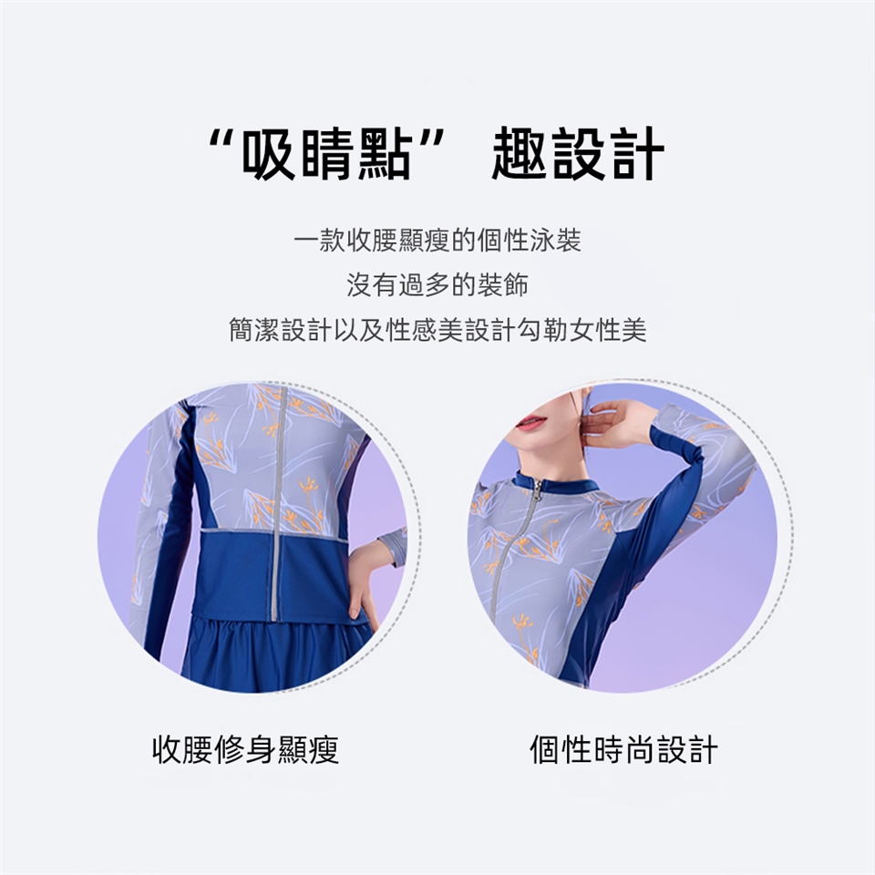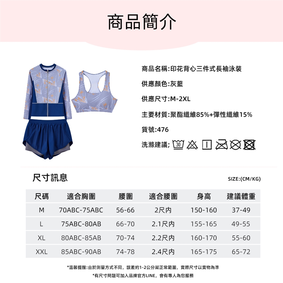 【STizi 史堤茲】和事現貨 印花背心三件式長袖泳裝(476)