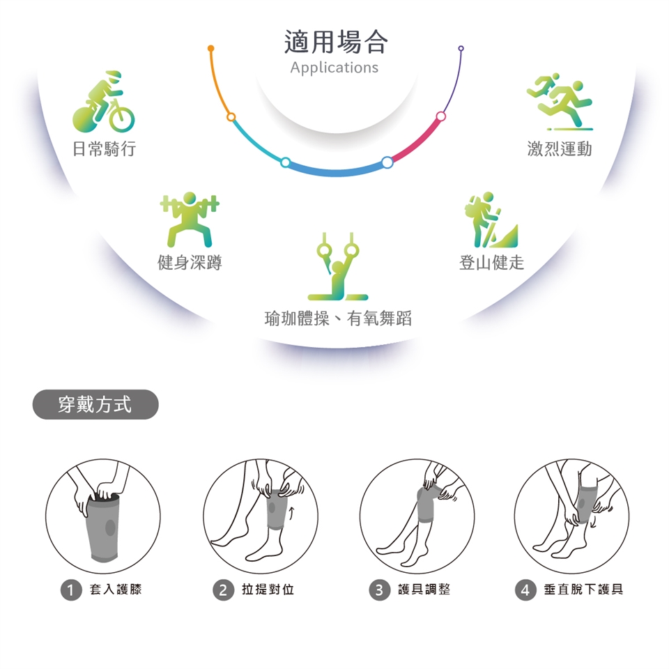 2.雙腳套入膝部拉提對位,護具調整至舒適位置。