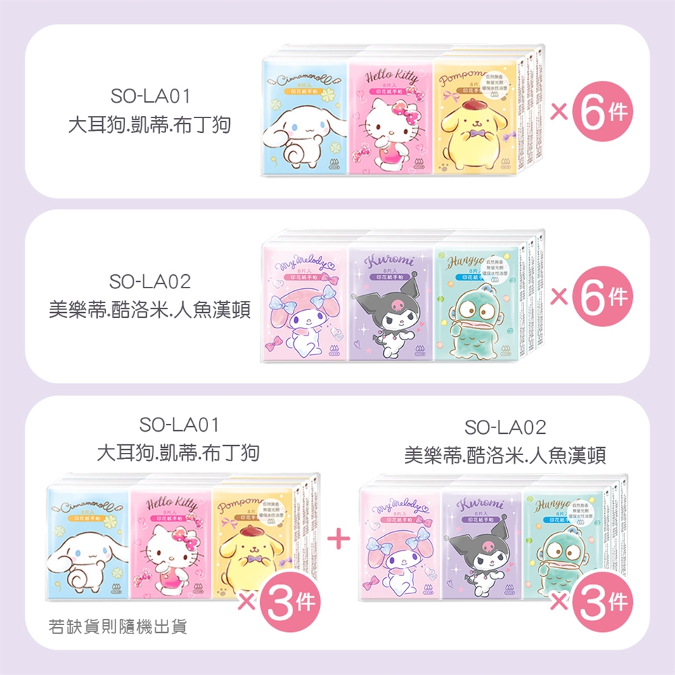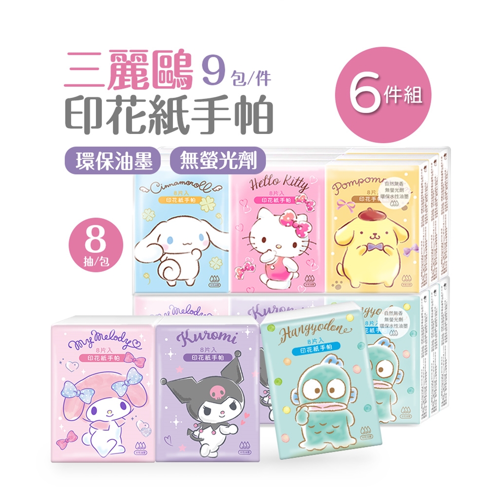 【三麗鷗系列印花紙手帕(9包x6組)】