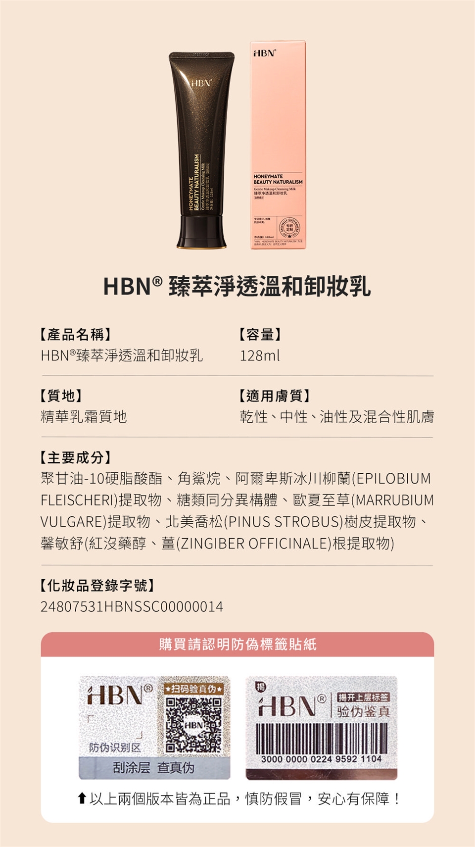 品名:【HBN官方】臻萃淨透溫和卸妝乳 128ml