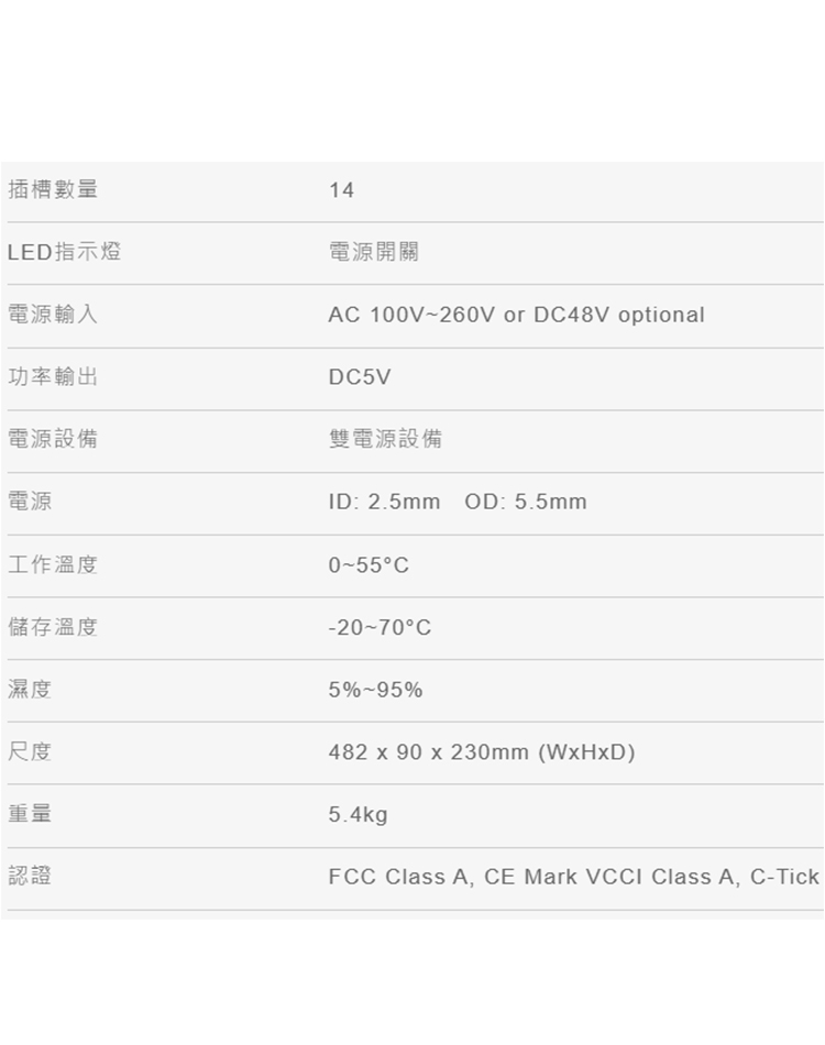 .認證 : FCC Class A, CE Mark VCCI Class A, C-Tick。