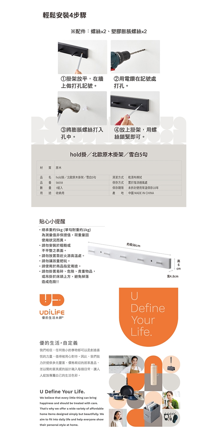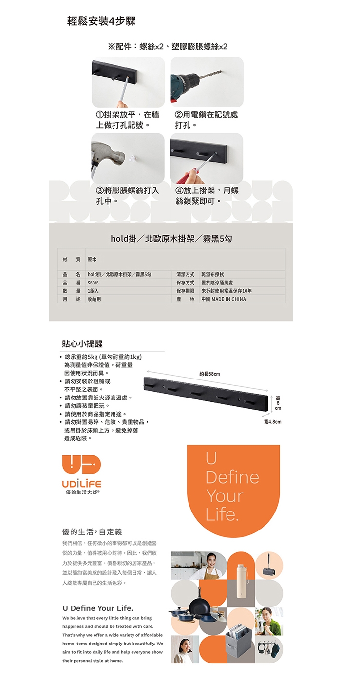 ★單勾耐重約1KG,總承重約5KG