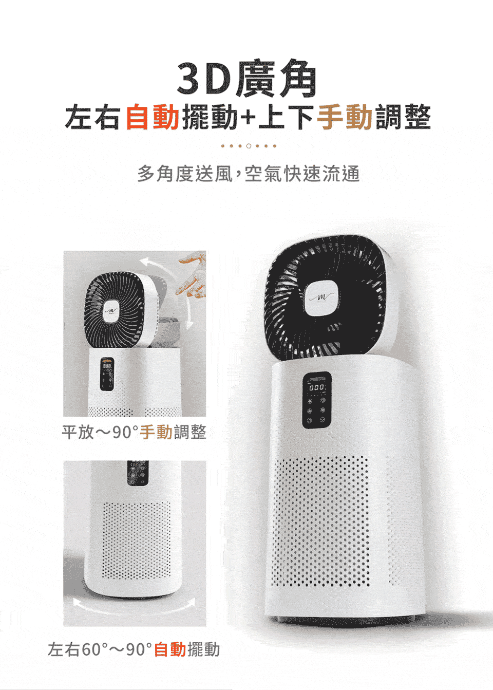 風扇上下手動調整:平放朝上~ 90度 (多角度調整)