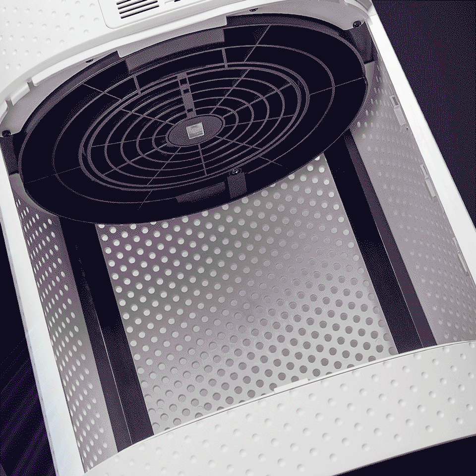 濾網組成:圓筒型三層複合過濾 ( 空調PET濾網 + HEPA 濾網(熔噴布)+ 活性碳過濾棉)