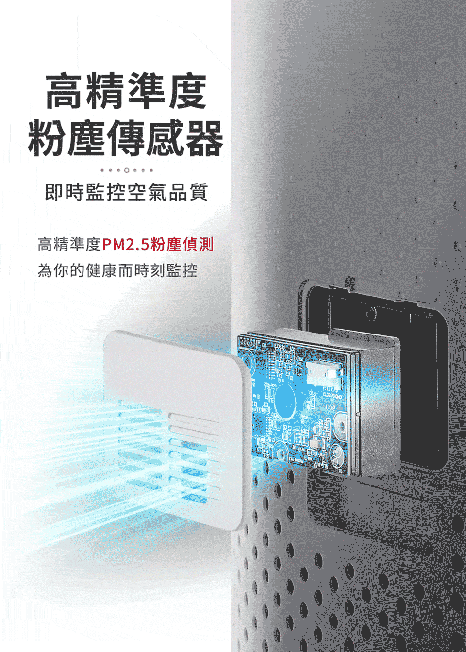 其他功能:童鎖、UV燈開關、精油薰香格、Wifi聯網,手機APP操作、粉塵自動感測