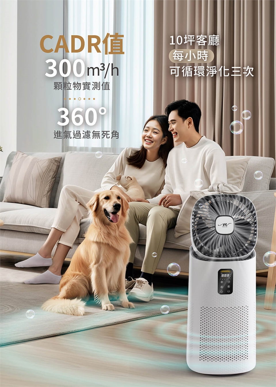 適用清淨空間:約10坪 (每小時可循環淨化3次)