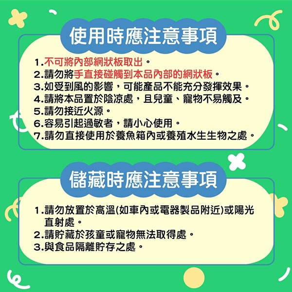 3.請注意如受到風的影響,可能產品不能充分發揮效果。